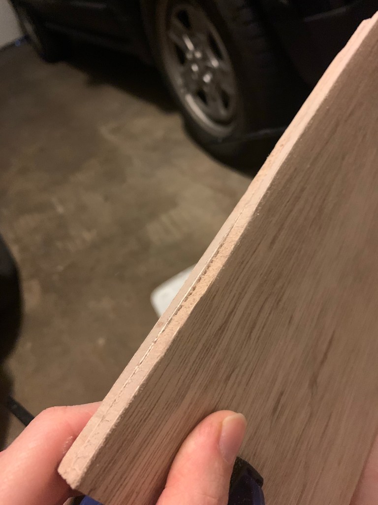 Things got much easier when I found a bigger utility knife (exacto knife, but I think that’s a brand name) and just clamped a ruler to the wood and cut ACTUAL STRAIGHT LINES!!