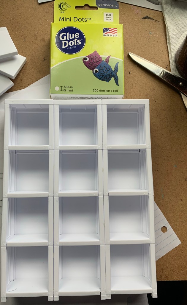 Using glue dots of all things! Why I didn’t think of that before is probably due to the fact they were packed up with my other craft supplies.