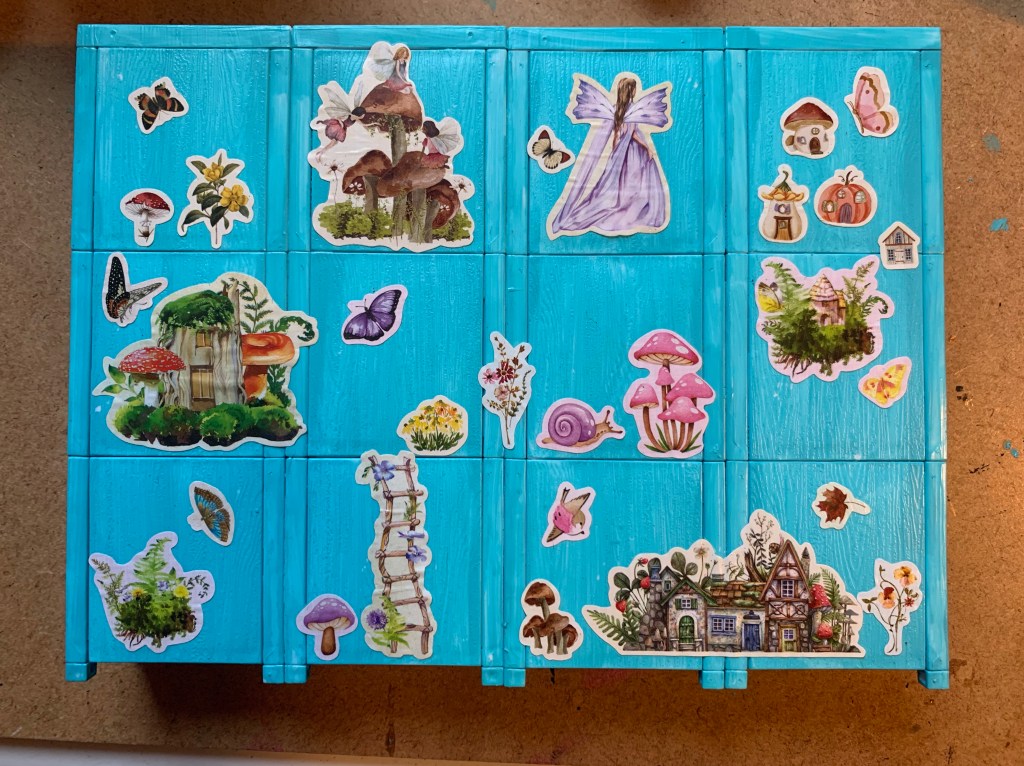 The paint made it thicker (obviously) and so it was difficult to get them to snap into place. I wanted a nice outdoorsy theme so added fairy stickers.