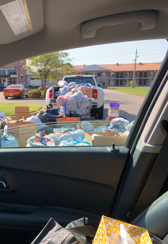 The owner and a manager collected from 4 different sites and had partnered with Morgan Steel and Cooper Moving to get the donations to North Carolina.